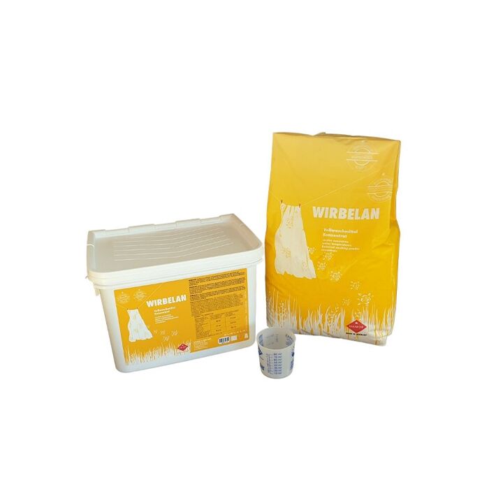 « Wirbelan est une lessive pour le linge blanc et le linge de maison sans phosphate pour un lavage au plus profond des fibres. Un dosage modéré suffit grâce à sa haute concentration. Les taches oxydables disparaissent dès 30°C. Pour du linge blanc et des textiles de couleur. Votre linge dégage un parfum frais mais discret de longue durée. Adapté à tous les textiles en dehors de la laine, la soie et les vêtements microfibre thermoactif. Wirbelan contient un activateur de blanchiment supplémentaire efficace dès 40°. Sa formule hygiénique, lave votre linge et en même temps le tambour de votre machine.